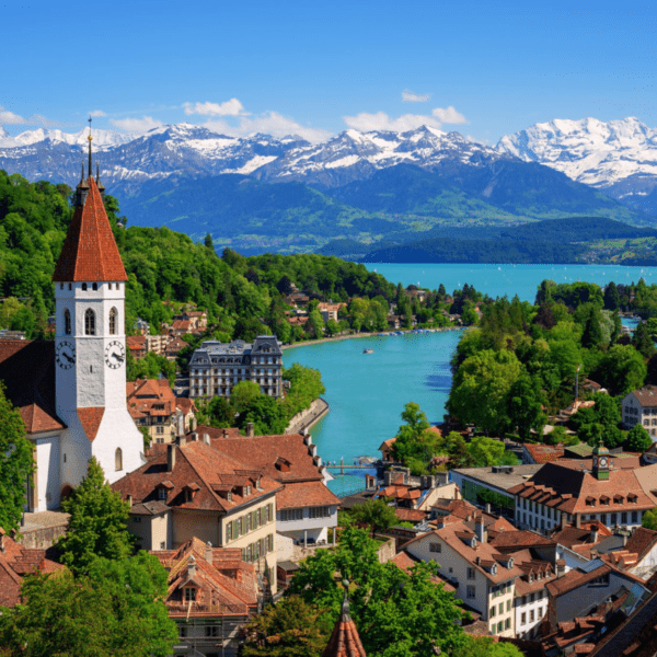 - Thị trấn Interlaken : Nằm giữa hai hồ Thun và Brienz, Interlaken được mệnh danh là “Viên ngọc xanh” giữa lòng dãy Alps Thụy Sĩ. Thị trấn nhỏ xinh này quyến rũ du khách bởi khung cảnh sơn thủy hữu tình, những đỉnh núi tuyết trập trùng và bầu không khí trong lành hiếm có. Nơi đây là điểm dừng chân lý tưởng để khám phá vẻ đẹp hùng vĩ của đỉnh Jungfrau.