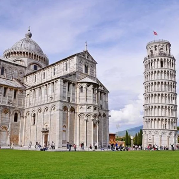 - Tháp nghiêng Pisa: Tháp được gia cố bằng 800 tấn chì đối trọng để giảm độ nghiêng. Đoàn chụp ảnh lưu niệm xung quanh tháp.