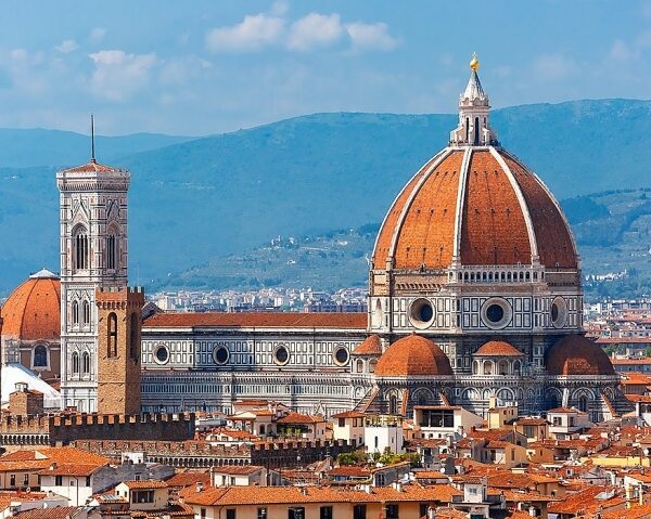 - Nhà thờ Duomo Santa Maria del Fiore, là biểu tượng của Florence, Ý, nổi bật với mái vòm gạch lớn nhất thế giới của Brunelleschi, mặt tiền đá cẩm thạch đa sắc, và là một phần của Di sản UNESCO, kết hợp kiến trúc Gothic và Phục Hưng.